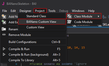 #Region Project Attributes #MainFormWidth: 600 #MainFormHeight: 600 #IgnoreWarnings: 16, 10, 14, 15 #End Region Sub Process_Globals Private BANano As BANano 'ignore End Sub Sub AppStart (Form1 As Form, Args() As String) ' you can change some output params here BANano.Initialize("BANano", "BANanoSkeleton",12) BANano.HTML_NAME = "index.html" BANano.Header.Title="BANano Skeleton" BANano.ExternalTestConnectionServer = "http://gorgeousapps.com" BANano.Header.AddCSSFile("skeleton-all.min.css") ' start the build BANano.Build(File.DirApp) ExitApplication End Sub ' HERE STARTS YOUR APP Sub BANano_Ready() End SubSave and open the Abstract Designer. In the Views Menu, under custom views you will find your newly created custom views: